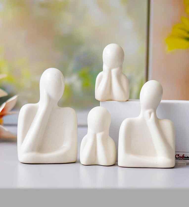 Set of 4 White Ceramic Handcrafted Couple Family Statue Sculpture|People Figurines Home Decor Items Showpiece for Living Room Bedroom Table Shelf TV Unit|Gift for Housewarming Birthday
