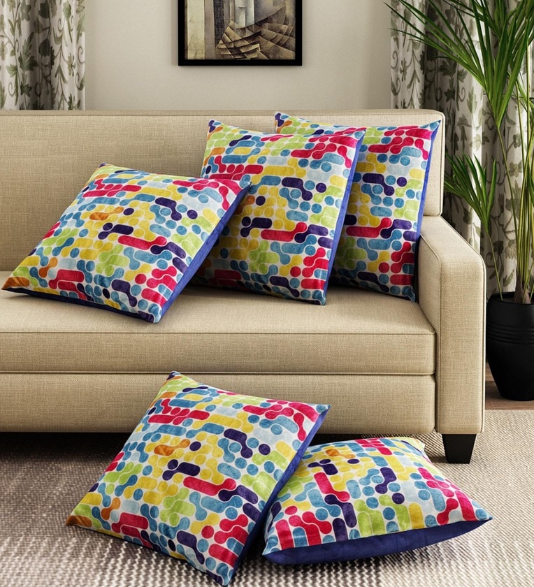 Multicolor Velvet Geometric 16x16 inches Cushion Cover (5Pc)