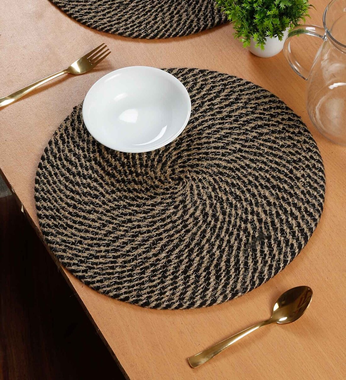 Set of 6 Jute Cotton Solid Pattern Reversible Table Runners