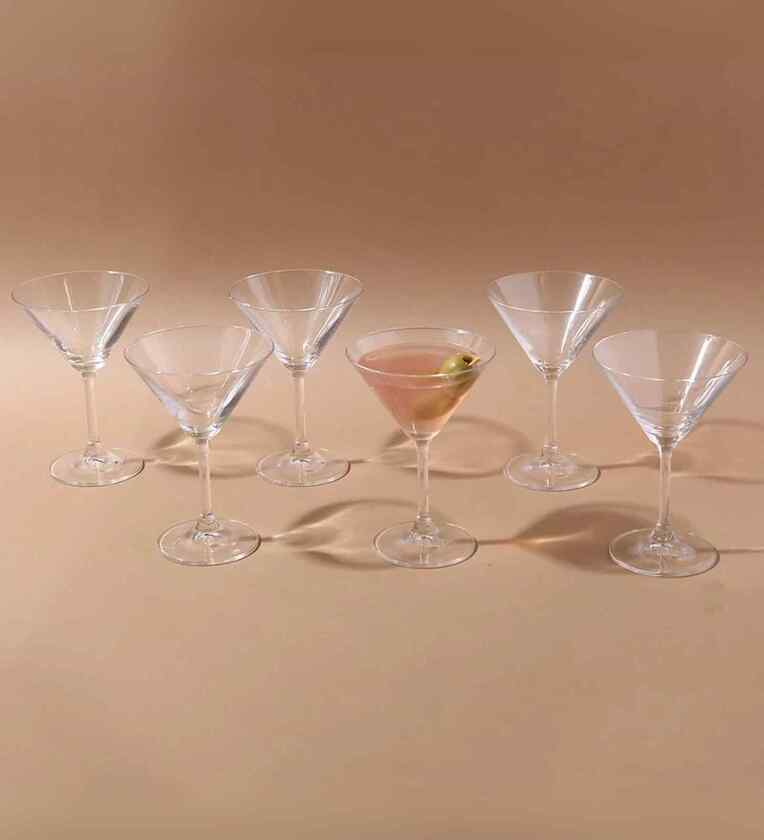 Set of 6 Transaprent Crystal Lead Free Glass 190ml Martini Glasses