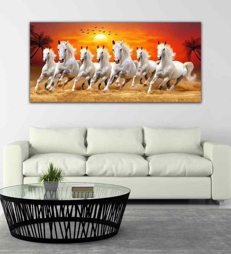 Seven Horses Running At Sunrise Premium Canvas Wall Painting