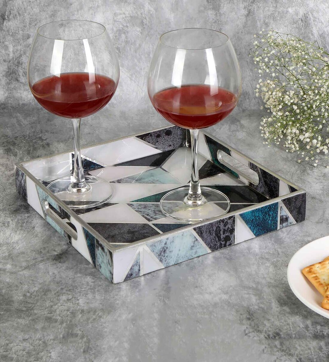 Shades Of Green & Gold MDF Wood Mosaic Square Serving Tray