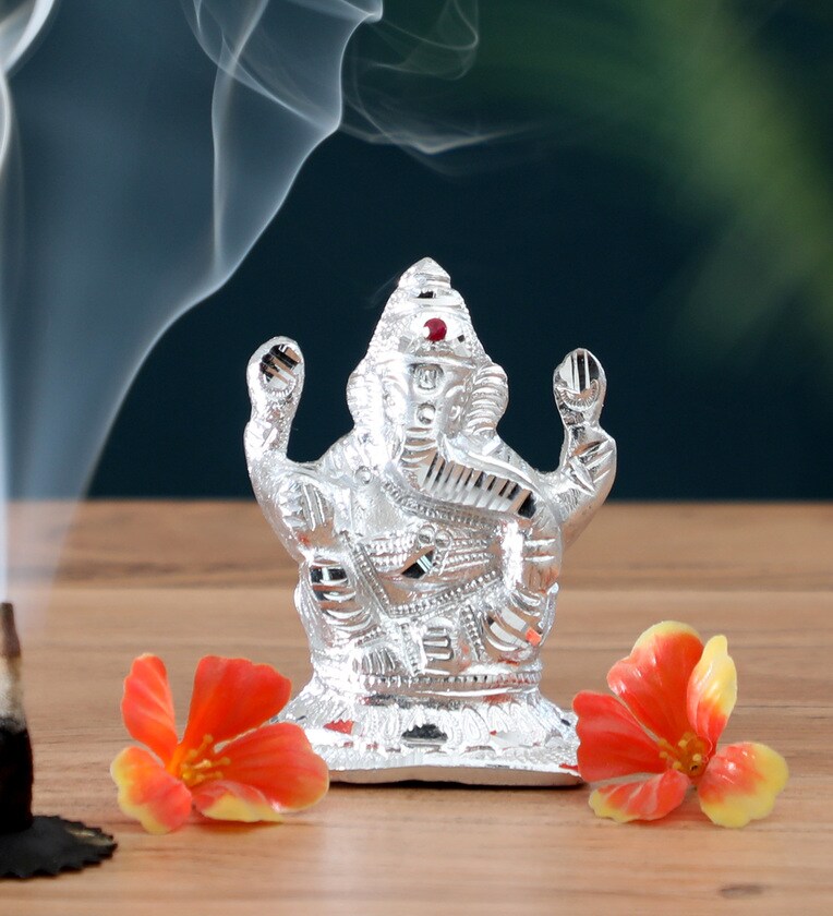 Silver Plated Aluminium Ganesha Idol
