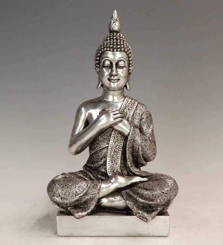 Bring peace and elegance to your space with this exquisite silver resin Buddha statue, featuring a serene pose with hands placed gently on the heart. Symbolizing compassion and mindfulness, this artefact is perfect for home or office d cor.