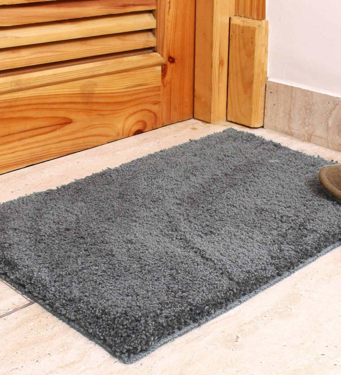 Silver Solid Microfibre 24x16 Inches AntiSkid Bath Mat
