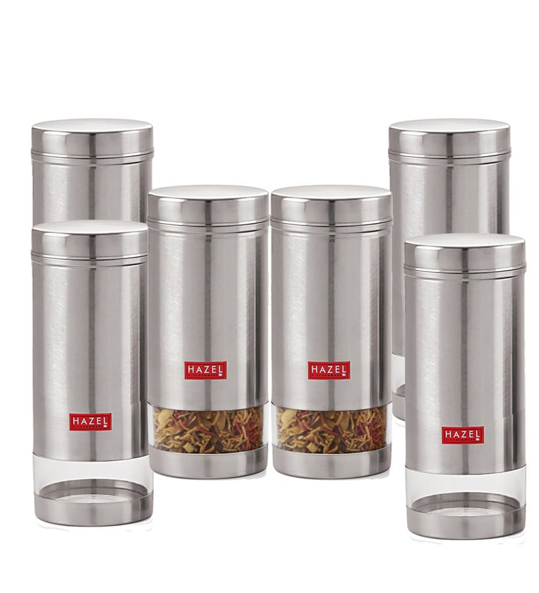 Silver Stainless Steel 1000 ml Transparent See Through Storage Container (Set of 6 )
