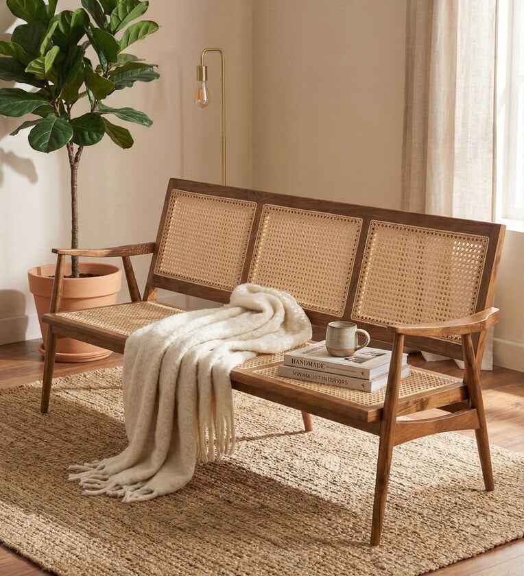 Sinni Solid Wood 3 Seater Sofa Chair In Natural Finish