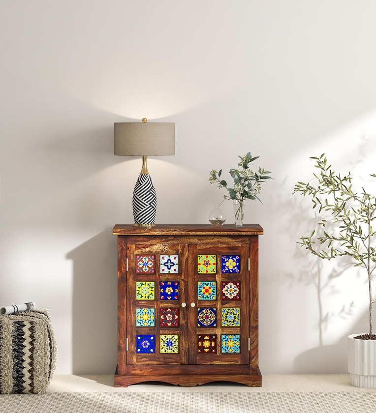 Siramika Sheesham Wood Cabinet In Rustic Teak Finish