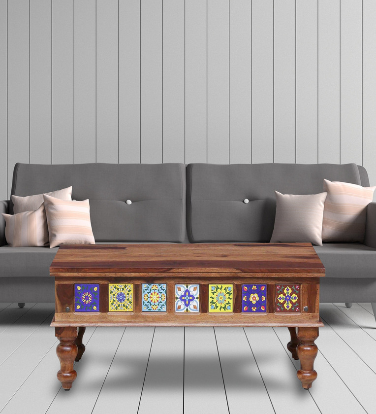 Siramika Sheesham Wood Large Coffee Table In Rustic Teak Finish
