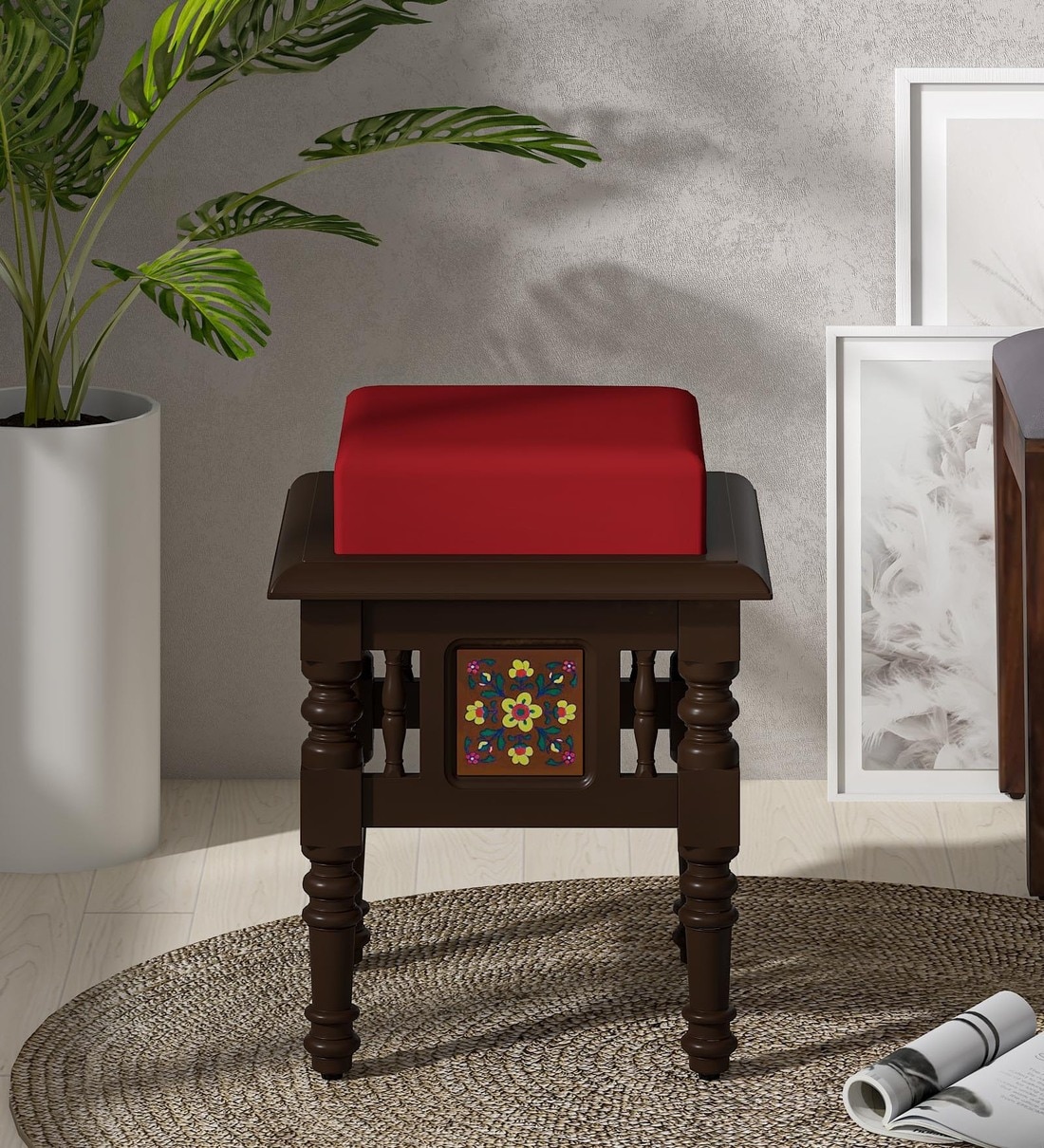 Siramika Sheesham Wood Seating Stool In Walnut Finish