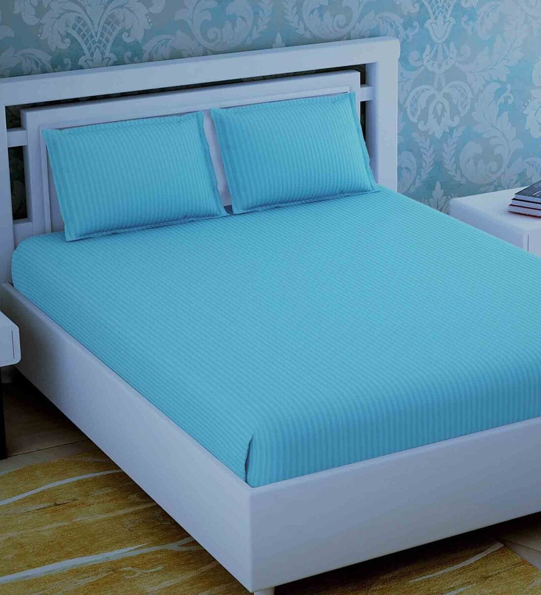 Sky Blue Stripes 280 TC Cotton King Sized Bed Sheets with 2 Pillow Covers