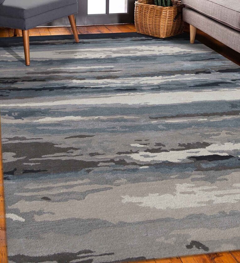 Grey Abstract Viscose 5 ft x 7 ft Hand Tufted Carpet
