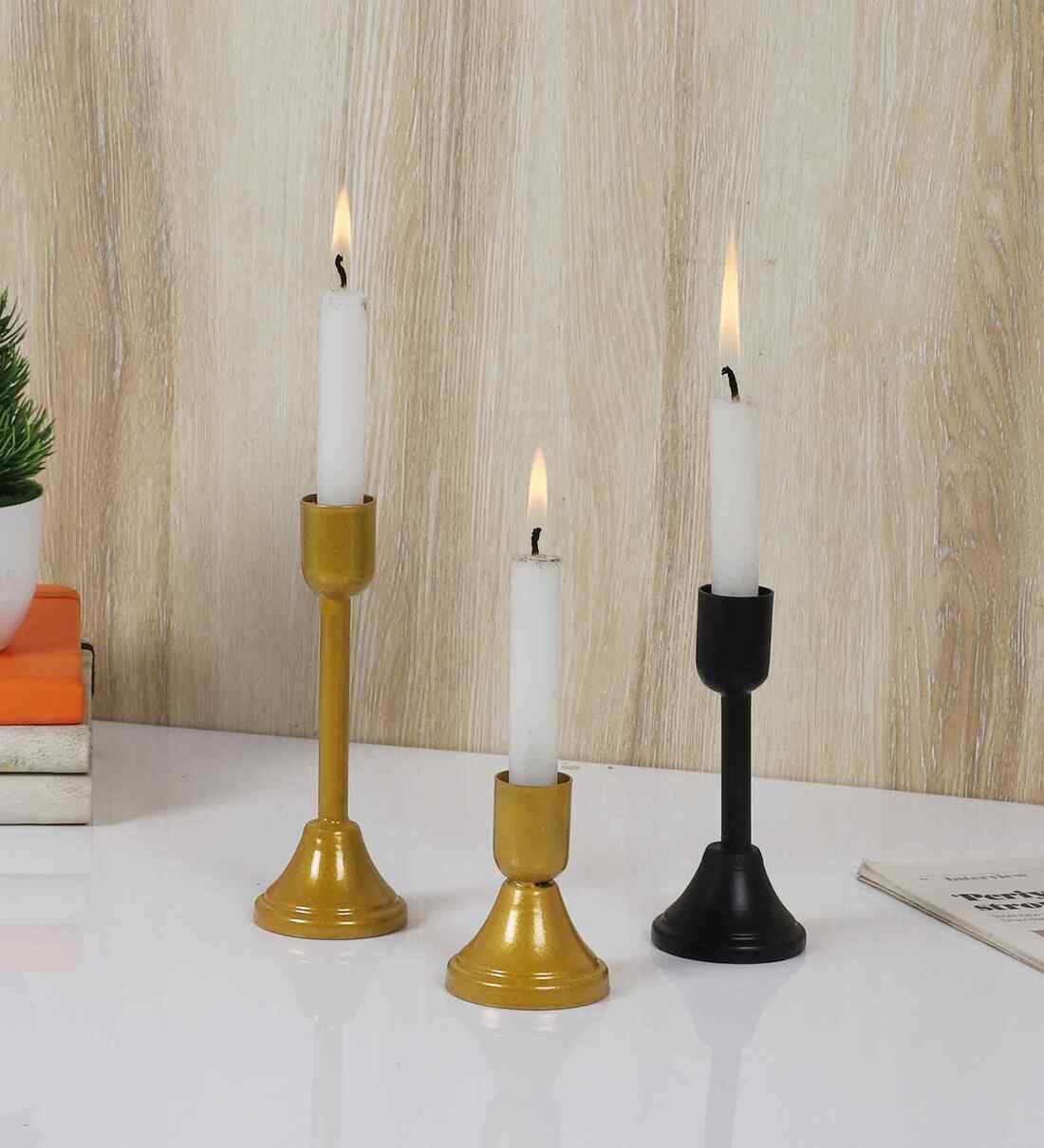 Small Black & Gold Candle Stand Set of 3 is Perfect for your Home & Office and can be gifted to your loved ones