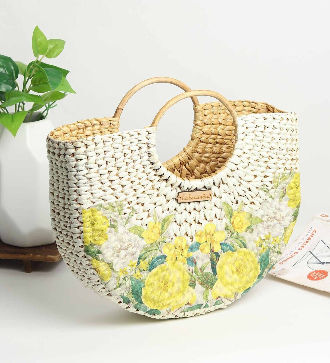 Small Tote Bag | Straw Bag | Basket Bag | Beach Bags for Women | Boho Bag | Women Handbag | Half Moon Bag (Mediun: 32x11x27 cm)