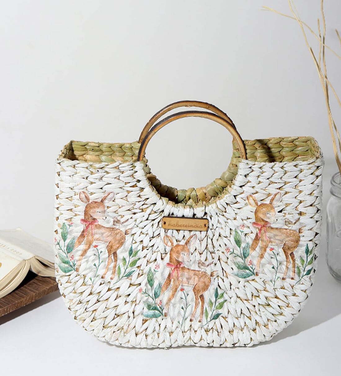 Small Tote Bag | Straw Basket Bags | Beach Bags for Women | Half Moon Bag | White Handbag (Design 01)