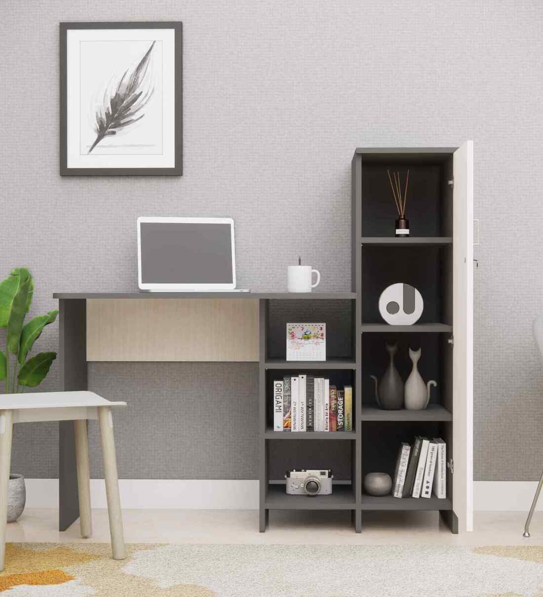 Smart Multipurpose Hutch Desk with storage in Slate Grey & Highland Pine Finish