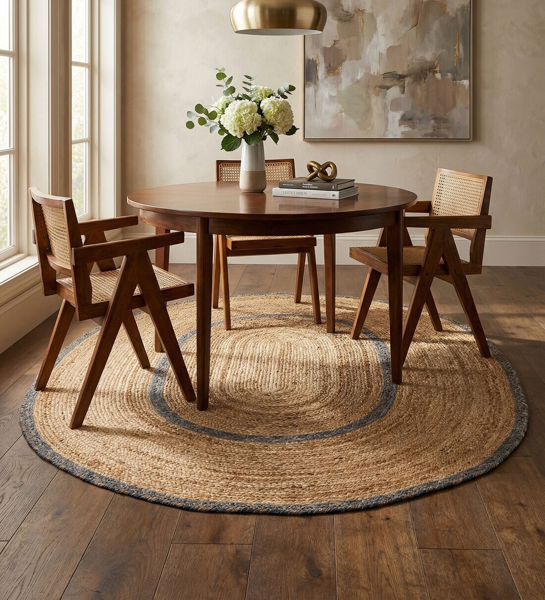 Balance natural texture with refreshing color through this braided jute-blend carpet. Hand-knotted dhurrie from 80% jute and 20% cotton, the warm tan base paired with seaside blue accents creates a relaxed coastal-inspired look. Its tactile braided surface adds depth while maintaining breathability and durability.