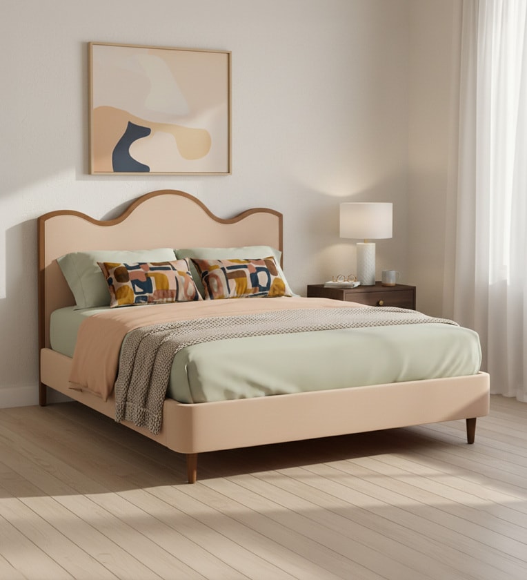 The Nestroots Solara Wave Luxe Bed is a striking blend of artistic expression and refined craftsmanship, designed to become the focal point of your bedroom. Its distinctive wave-shaped upholstered headboard introduces a sense of movement and fluidity, adding depth, character, and a sculptural presence to the space. This expressive design element brings a creative yet balanced aesthetic, making the bed ideal for modern interiors that celebrate individuality.The Nestroots Solara Wave Luxe Bed is a striking blend of artistic expression and refined craftsmanship, designed to become the focal point of your bedroom. Its distinctive wave-shaped upholstered headboard introduces a sense of movement and fluidity, adding depth, character, and a sculptural presence to the space. This expressive design element brings a creative yet balanced aesthetic, making the bed ideal for modern interiors that celebrate individuality.Upholstered in luxurious velvet, the Solara Wave Luxe Bed offers a rich, soft texture that enhances both comfort and visual warmth. The plush upholstery elevates the overall feel of the bed while creating an inviting atmosphere that complements contemporary d cor styles. Every curve and contour is thoughtfully crafted to reflect elegance and modern sophistication.