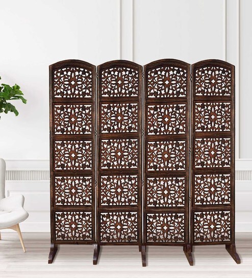 Wooden Partition Brown Wood Partition Screen Room Divider. Why compromise on privacy when you can use the Mango Wood Partition Screen Room Divider? This piece of decor is made using Mango Wood and is extremely durable. Featuring multiple screens that can be adjusted as per your need, this room divider is a perfect choice. Outer frame comprises of Solid Mango Wood and Panel designs are made of MDF wood.54rt Designed with a pretty pattern all over, this divider is alluring. A one-stop-shop for home decor and furniture.