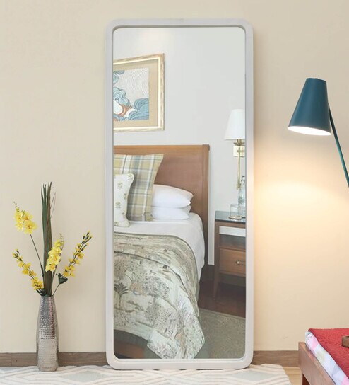 Solid Wood Rectangle Full Length Mirror in White Colour