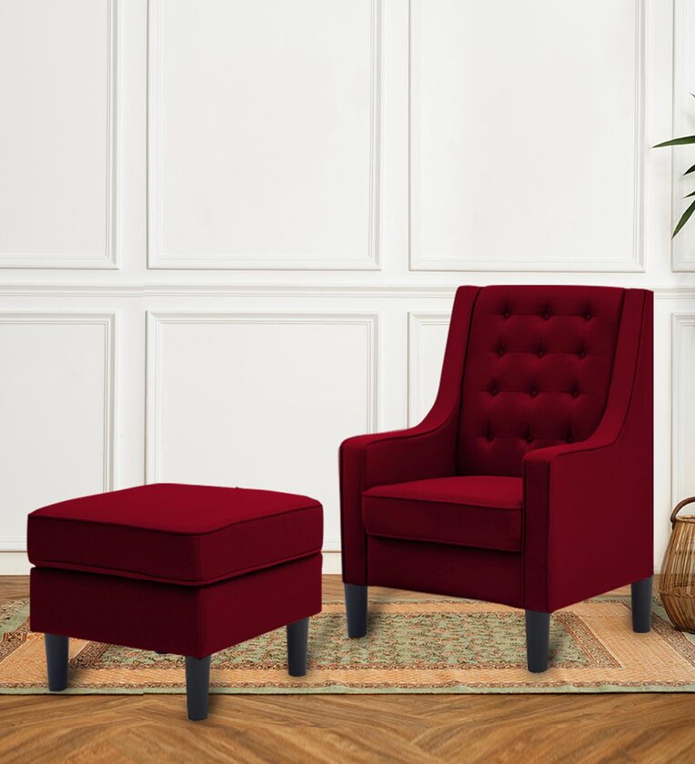 Sona Fabric Full Back Lounge Chair in Blood Maroon Colour