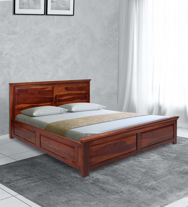 Sophia Sheesham Wood Queen Size Bed in Walnut Finish with Box Storage