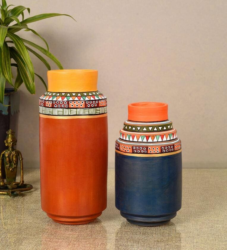 Spice Route Blue Terracotta (Set of 2) Vases