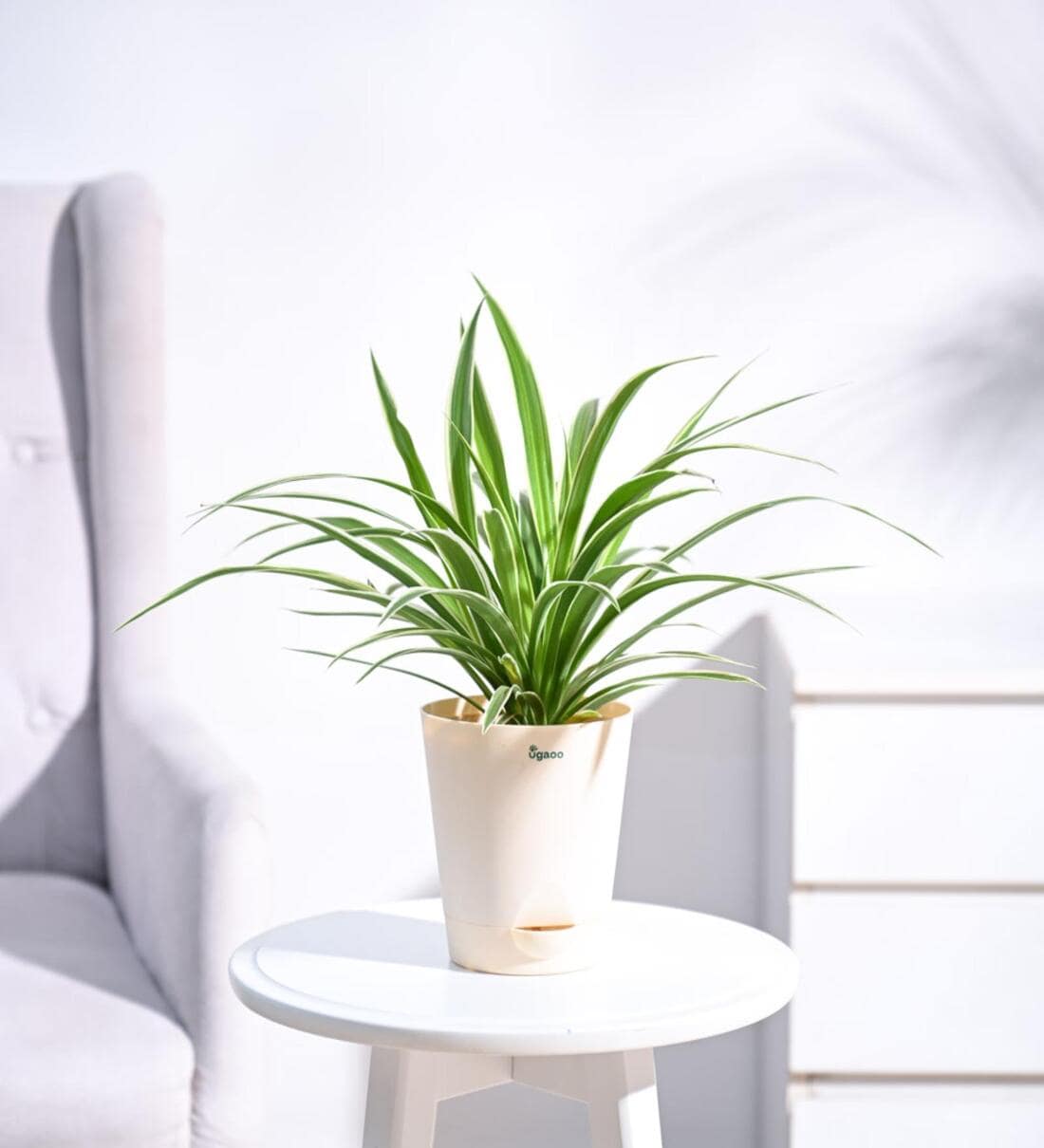 Chlorophytum Spider, also the Spider Plant is an impressive indoor plant and perfect for beginners. It is not only easy to care for but also a NASA certified air purifier. Its long, green foliage with white variegations look good in both hanging planters and as desktop setups. In favourable conditions, it blooms with small white flowers and its pups grow on stems cascading from the plant. Note - The dimensions may differ by 1-2 Inches. As it is a natural plant