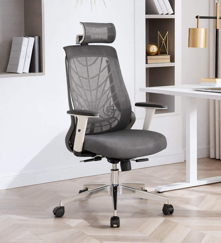 Spider Breathable Mesh Ergonomic Chair with Adjustable Lumbar Support & Handle in White Colour