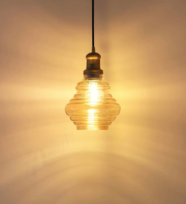 HEIGHT: WIRE LENGTH IS ADJUSTABLE UPTO 1MTR(100 CM) Enhance the interiors of your space with this timeless & elegant Hanging Light. The lamp gives a stylish look to your space while adding a touch of grandeur. This lamp provides sufficient lighting to brighten the corners of your room and delivers diffused illumination which sets the ambience and the mood of your space. It is made in our factory in India. Great With Modern Home Decor: This hanging lamp helps to brighten up the room and has a contemporary design that matches perfectly with the furniture. Features: Can easily blend in indoor spaces like living room, bedroom, side table, lobby area, dinning table, bar area & kitchen, and outdoor spaces like balconies, terrace, patios and outdoor walls. This lamp comes with a Metal Base, Sturdy Frame, Strong Glass and Elegant Finish. Unrivalled Quality - We follow precise quality control measures to ensure that the product(s) you receive are of the highest quality. In the rarest cases that you receive a damaged/ defective product, please reach out to us and let us resolve your issue to the best of our capabilities. Recommended Uses - This lamp is an ideal decor piece for indoor areas like bedroom, living room, dinning room, lobbies, side table, bar and kitchen; and outdoor spaces like patios, outdoor walls, terrace and balconies. It is also an excellent buy for offices, restaurants, cafes, hotels and showrooms.