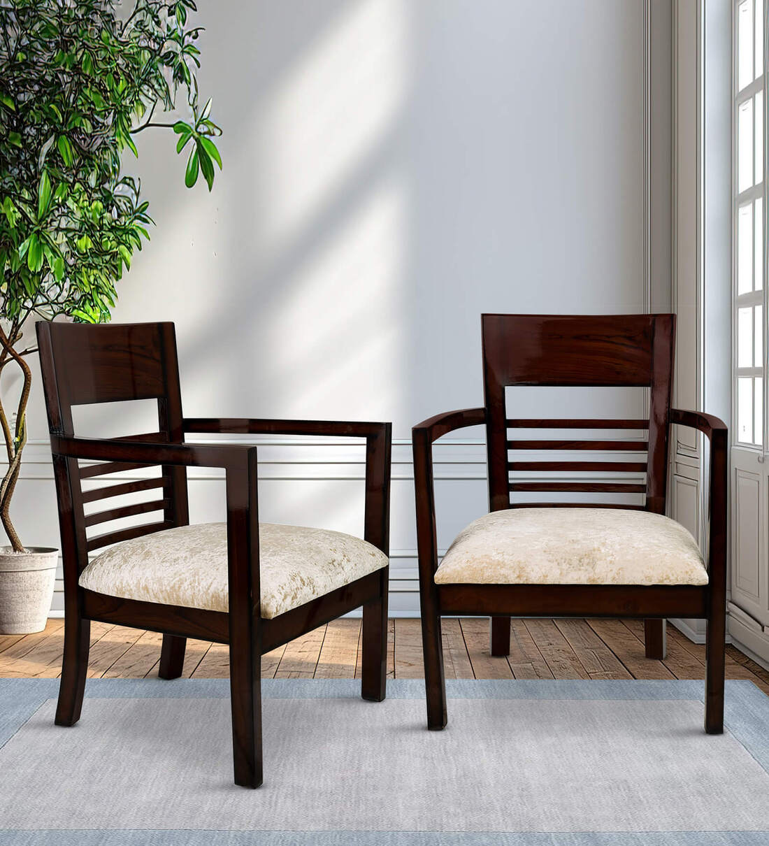 Spring Teak Wood Arm Chair In Brown Finish (Set of 2)