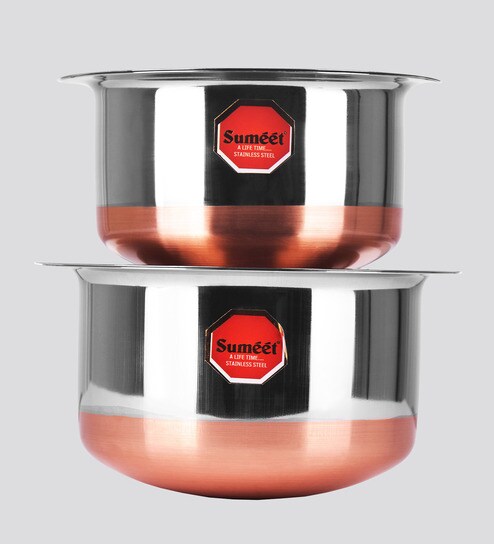 Stainless Steel Copper Bottom 2 Pcs Cooking Pot With Lids