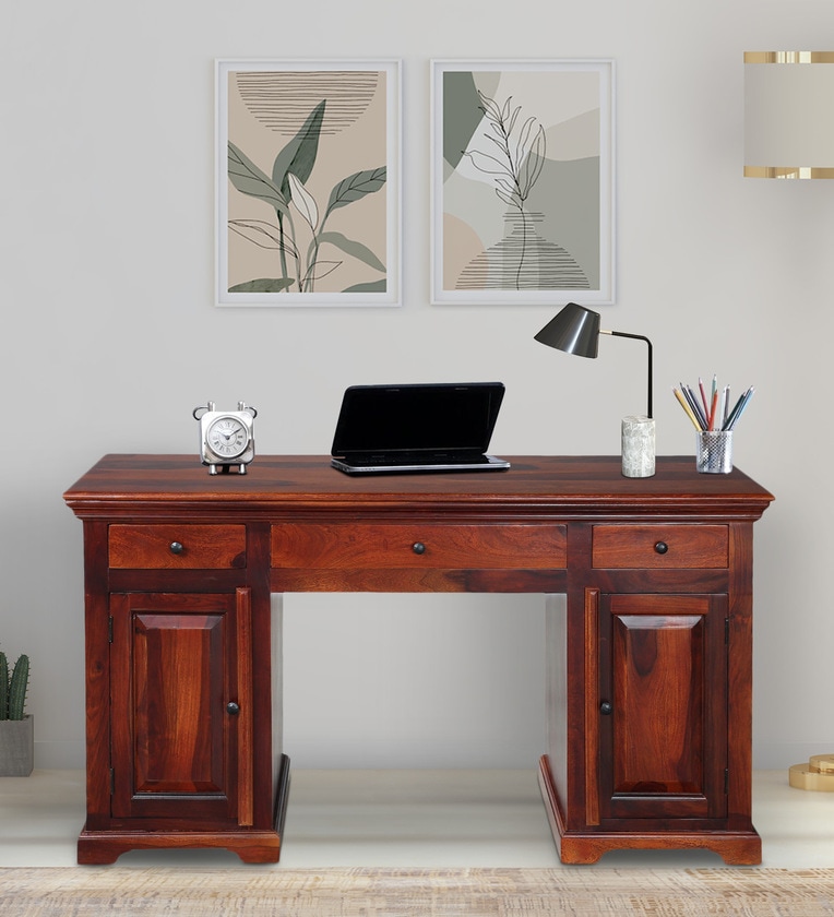 Stanfield Sheesham Wood Writing Table in Scratch Resistant Honey Oak Finish