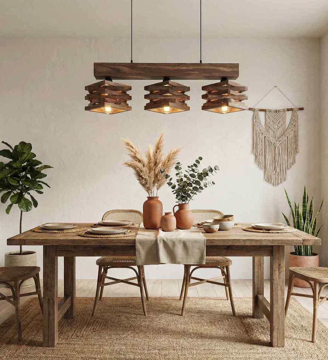 Star 3 Lights Brown Solid Wood Linear Chandelier Cluster Hanging Light
