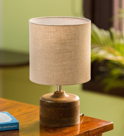 Starlight White Cotton Shade Table Lamp With Brown Base