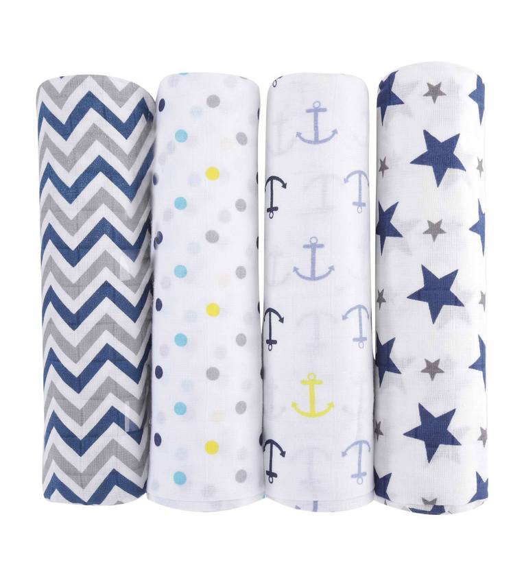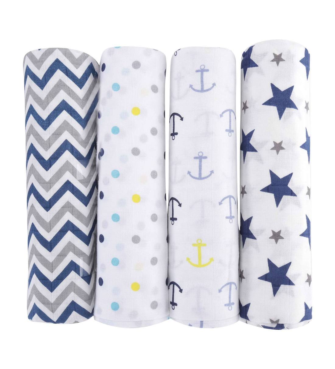Stars & Anchor Baby Swaddle Wrap in Blue (Set of 4)