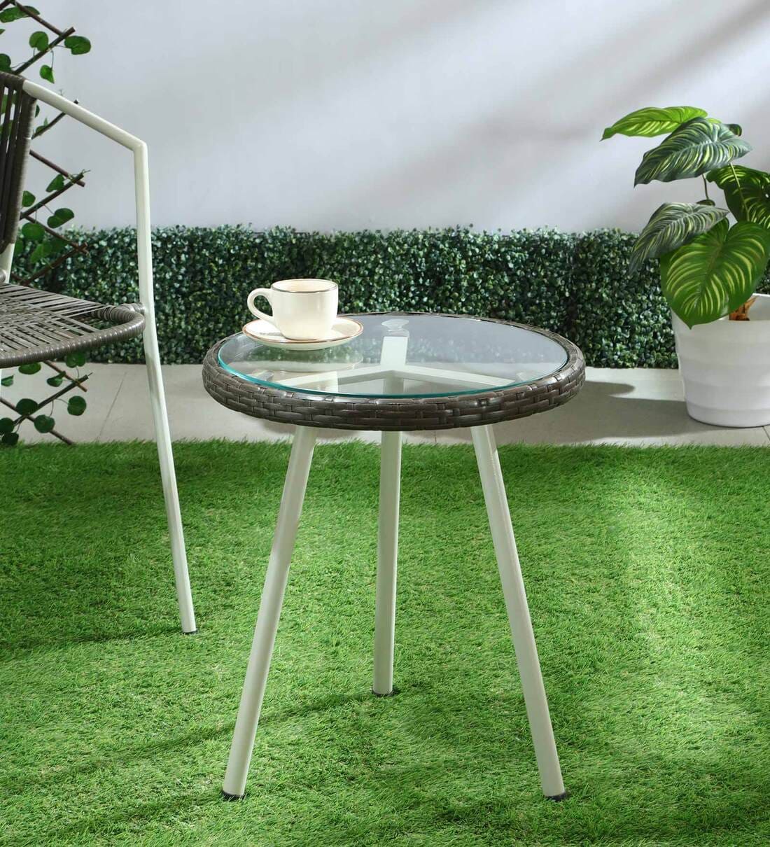 Furniture Material - Mild Steel Powder Coated - Outdoor Rope Weaving - Toughened Glass