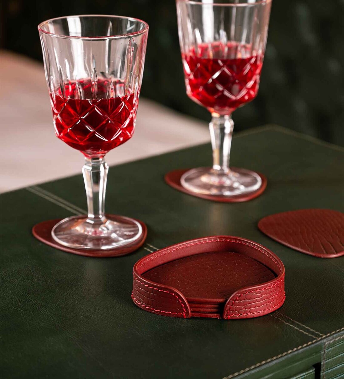 Sterling Maroon Recycled leather (Set of 6) Coasters