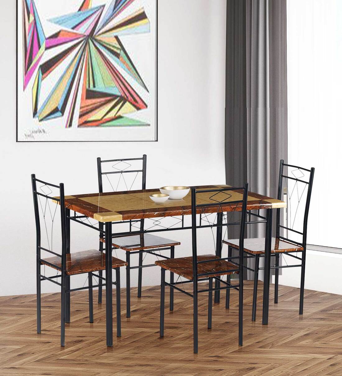 Contemporary & Modern; Frame Made of 0.8 mm thick powder coated Mild Steel / Table top made of 18 mm thick MDF with Marble finish PVC lamination