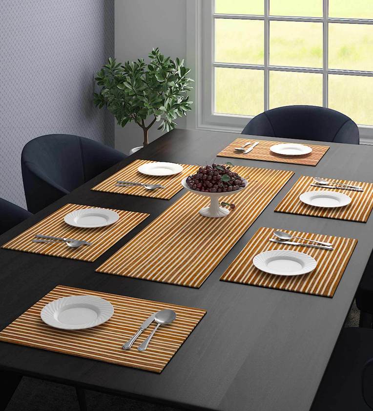Stripped (18x13) Yellow Polyester (Set of 7) Table Linen Set
