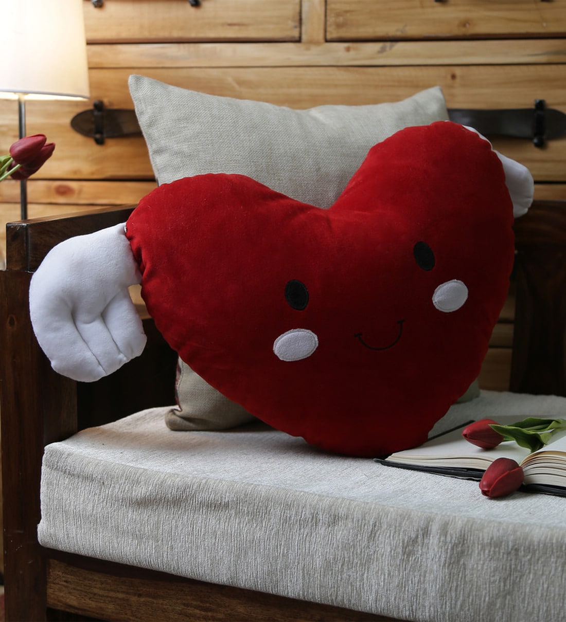 Red Velvet 16 x 16 Inch Heart Shaped Cuddle Cushion