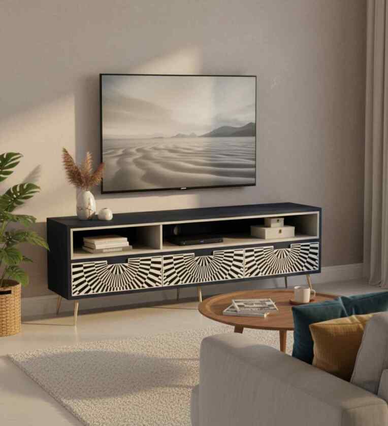 Sunstrike Bone Inlay TV Console In Indigo Colour