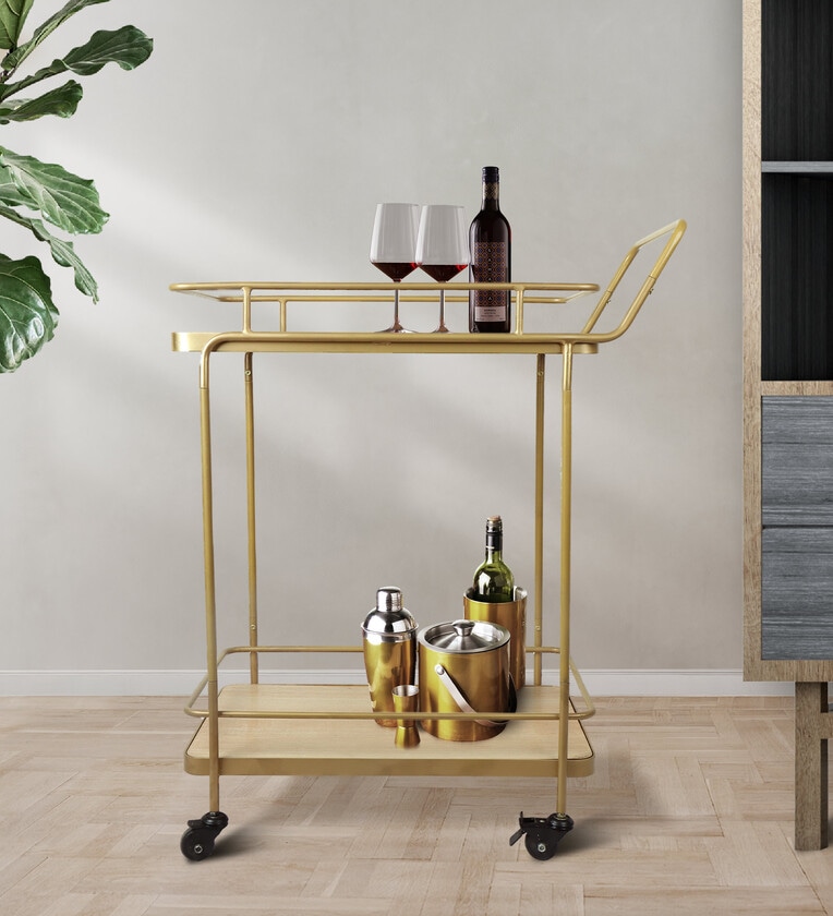 SuperNova Metal Bar Trolley In Gold Finish With Wood