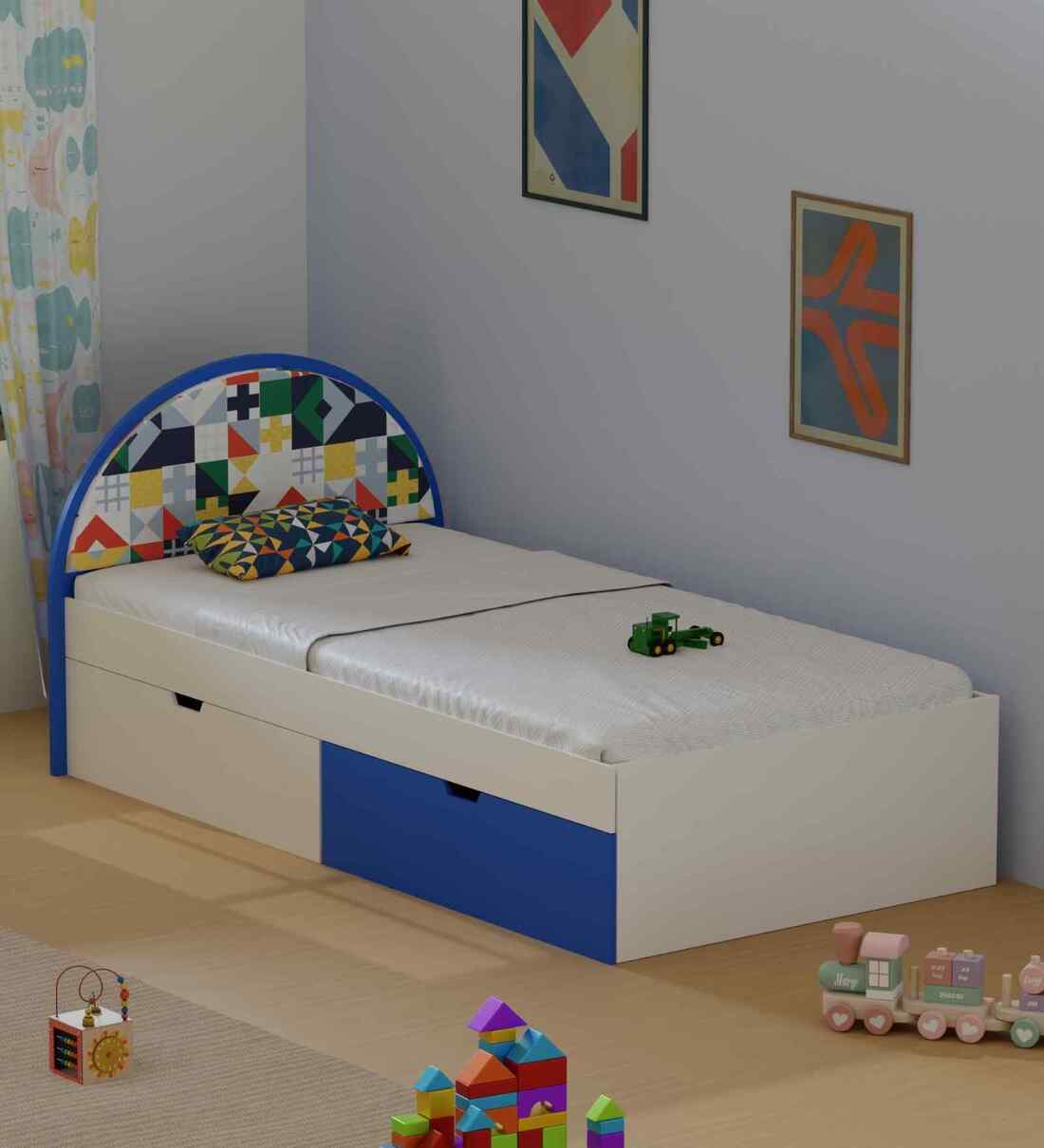 STYLISH & FUNCTIONAL KIDS BED: Modern kids bed (6x3ft Mattress size) with built-in storage drawer, cushioned back, and two-tone color scheme. Perfect children s bed, ideal for reading, relaxing, and room d cor upgrades. SAFE FOR CHILDREN NO PAINT, NO CHEMICALS: Made with non-toxic materials and zero paint. Features scratch-resistant PVC lamination, rounded corners, cushioned back with polycotton fabric, and no sharp edges, making it a child-safe bed for toddlers to teens. DURABLE ENGINEERED WOOD CONSTRUCTION: Crafted from high-strength HDF wood with matte laminate finish and weight bearing capacity of 140Kgs on bed. Sturdy ISO certified joinery prevents loosening over time. Includes floor-protective plastic buffers for easy movement and scratch-free flooring. Designed for long-lasting durability and high load-bearing capacity. AMPLE STORAGE: 2 Heavy-Duty Pull-Out Drawers on wheels, each with a 60 kg load-bearing capacity. Perfect for toy storage, bedding, or clothes. Drawers can be fully removed for playtime and allow easy cleaning underneath. DIY ASSEMBLY WITH SUPPORT: Comes with step-by-step assembly manual and video guide. Need assistance? You can contact Boingg! Service Support on 011-41170803