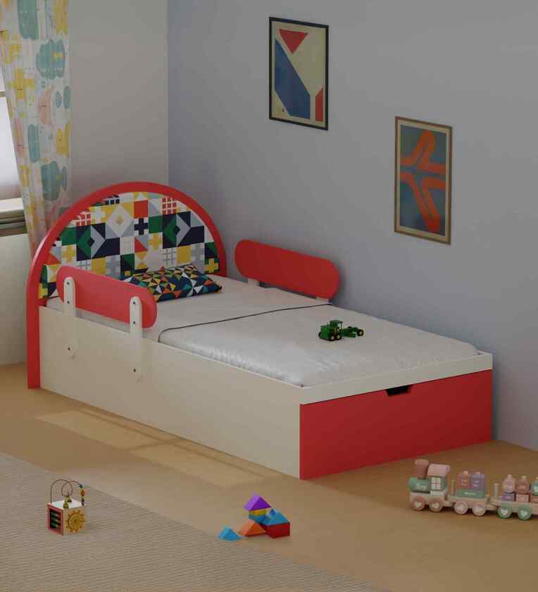 STYLISH & FUNCTIONAL KIDS BED: Modern toddlers bed (5x2.5ft Mattress size) with drawer and box storage, cushioned back, protecttive side-railings, and two-tone color scheme. Perfect children s bed that can be placed next to the Parent's bed & ideal for reading, relaxing, and room d cor upgrades. Please note: Mattress not included in the bed. SAFE FOR CHILDREN NO PAINT, NO CHEMICALS: Made with non-toxic materials and zero paint. Features scratch-resistant PVC lamination, rounded corners, cushioned back with polycotton fabric, and no sharp edges, making it a child-safe bed for toddlers to teens. DURABLE CONSTRUCTION: Crafted from high-strength HDF wood with matte laminate finish and weight bearing capacity of 110Kgs on bed. Sturdy ISO certified joinery prevents loosening over time. Includes floor-protective plastic buffers for easy movement and scratch-free flooring. Designed for long-lasting durability and high load-bearing capacity. AMPLE STORAGE: 1 Heavy-Duty Pull-Out Drawer on wheels and Box Storage towards the Headrest, each with a 60 kg load-bearing capacity. Perfect for toy storage, bedding, or clothes. Drawer can be fully removed for playtime and allow easy cleaning underneath. DIY ASSEMBLY WITH SUPPORT: Comes with step-by-step assembly manual and video guide. Need assistance? You can contact Boingg! Service Support on 011-41170803