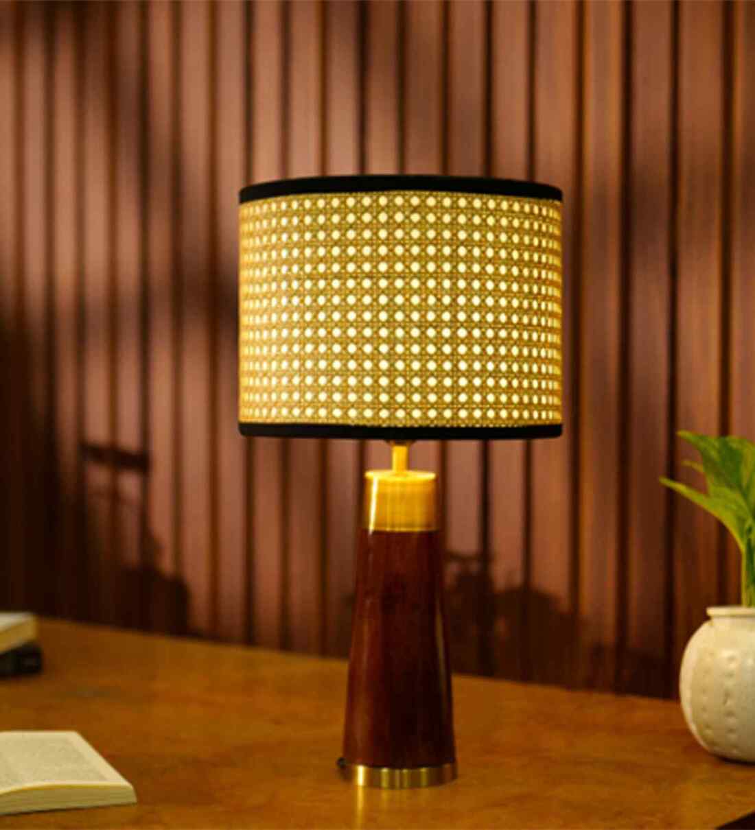 Table Lamp Rio Collection 19.5" Mango Wood Lamp With Natural Rattan Shade