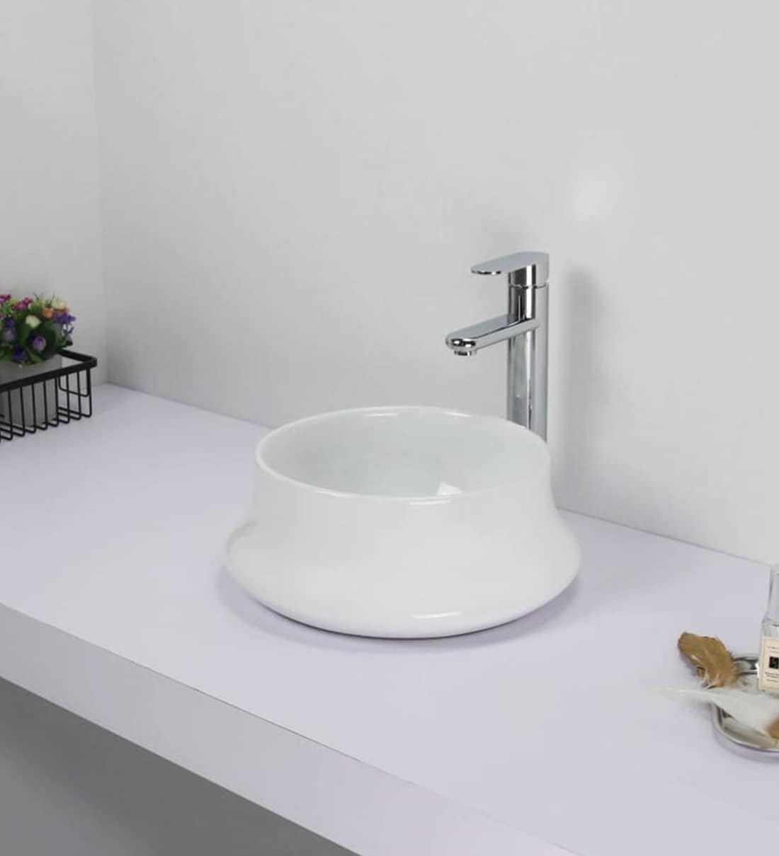 Ceramic Round Shape White Counter Top Wash Basin (H: 5.6, W: 14.4, D: 14.4 Inches)