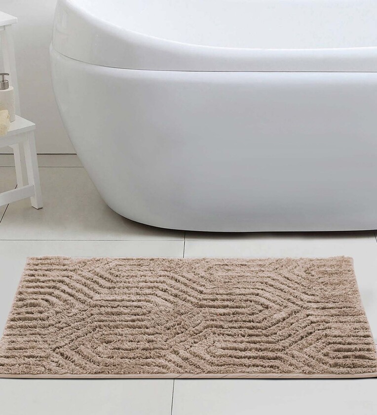 Taupe Solid 100 % Cotton 23.6x15.7 Inches AntiSkid Bath Mat