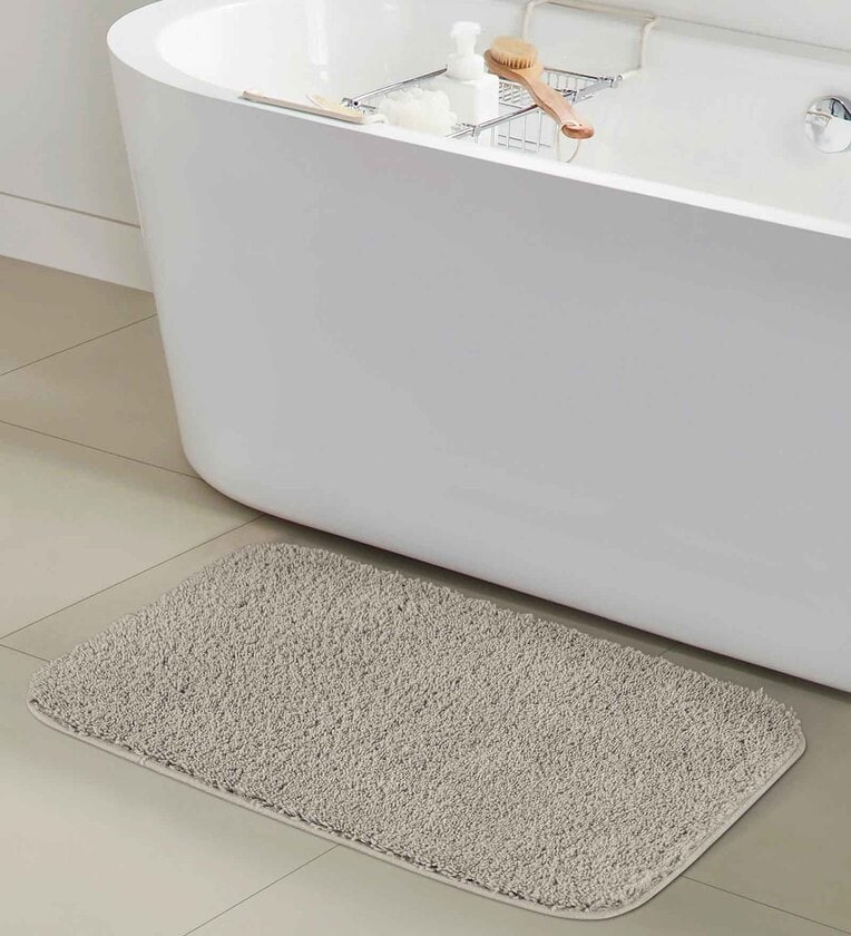 Taupe Solid Polyester 24x16 Inches AntiSkid Bath Mat