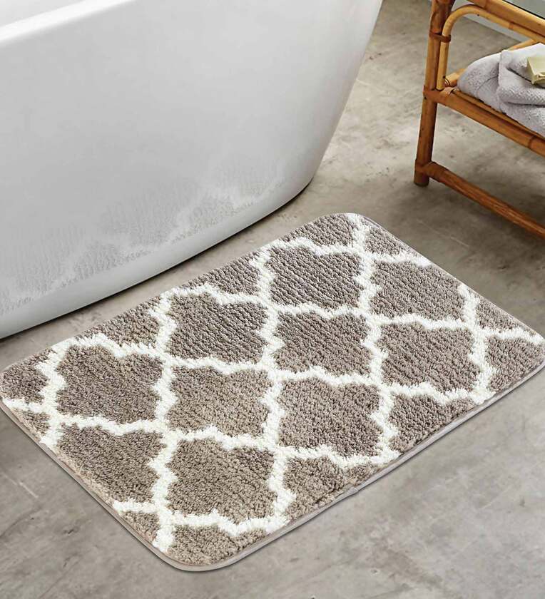 Taupe Traditional Polyester 24x16 Inches AntiSkid Bath Mat